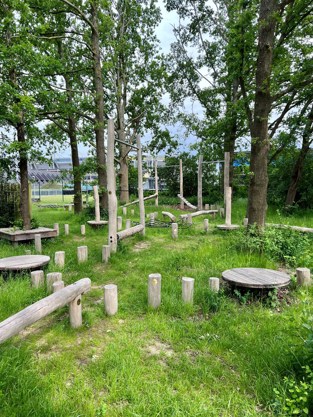 Legepladsen ligger i det lille skovområde bag Brøndby Stadion midt i Sportsbyen. Naturlegepladsen byder på en junglebane med udfordringer og balanceaktiviteter mellem træerne. Børnene kan også udfordre sig selv i et stort pyramidenet eller tage en hoppetur på trampolinerne.
