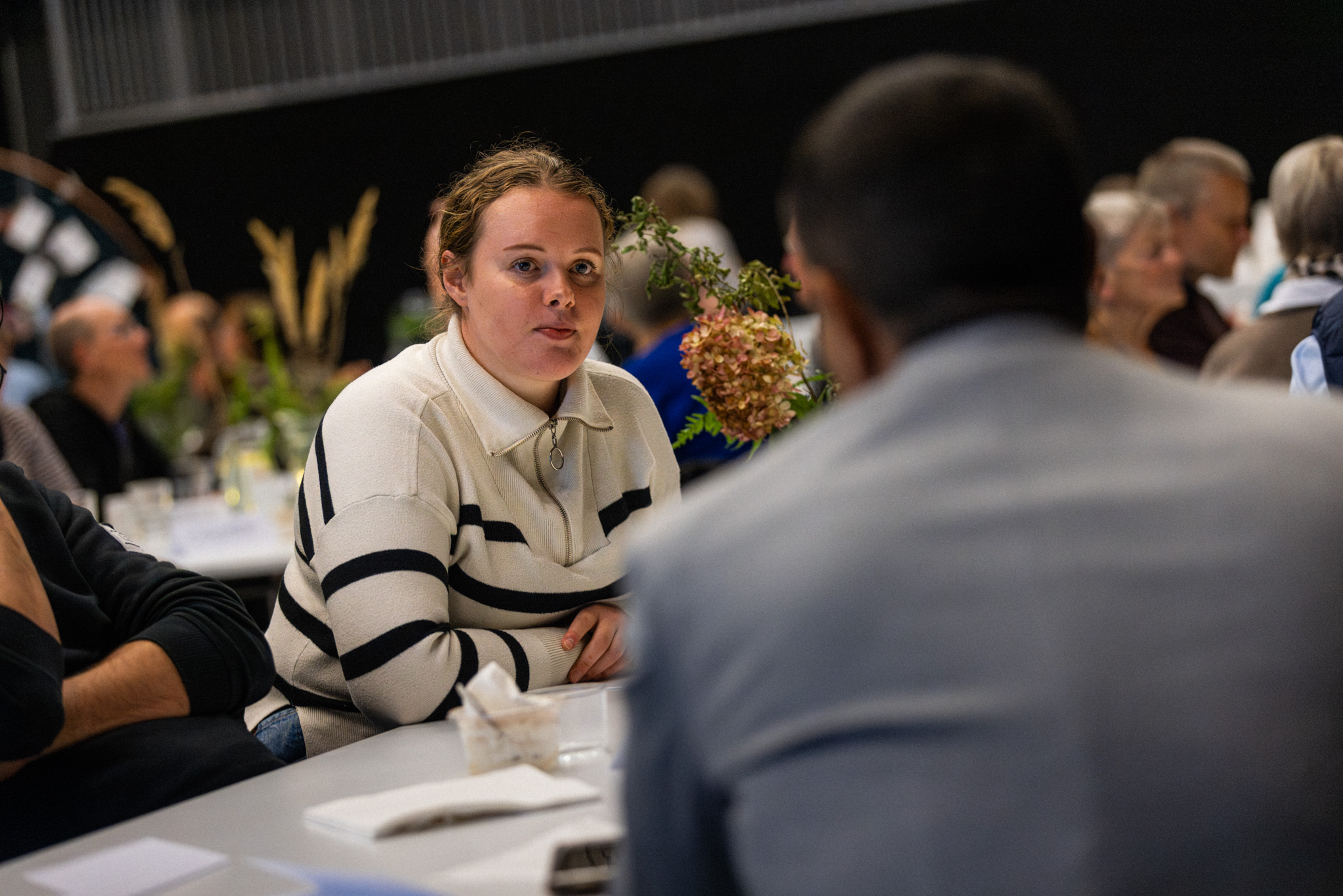 En af de borgere der var mødt op, var Ann-Louise Kragelund Jensen fra Kirkebjerg i Brøndbyvester: ”Det er genialt at inddrage borgernes idéer som drømme og skabe et arrangement, hvor os der bor i Brøndby har mulighed for at blive set og hørt af politikerne. Når det foregår som en middag, er fokus på i fællesskab at få skabt en god samtale, frem for at det kun er politikerne, der har en diskussion.” Fotograf: Patrick Richter Lauritzen, ThinkAlike