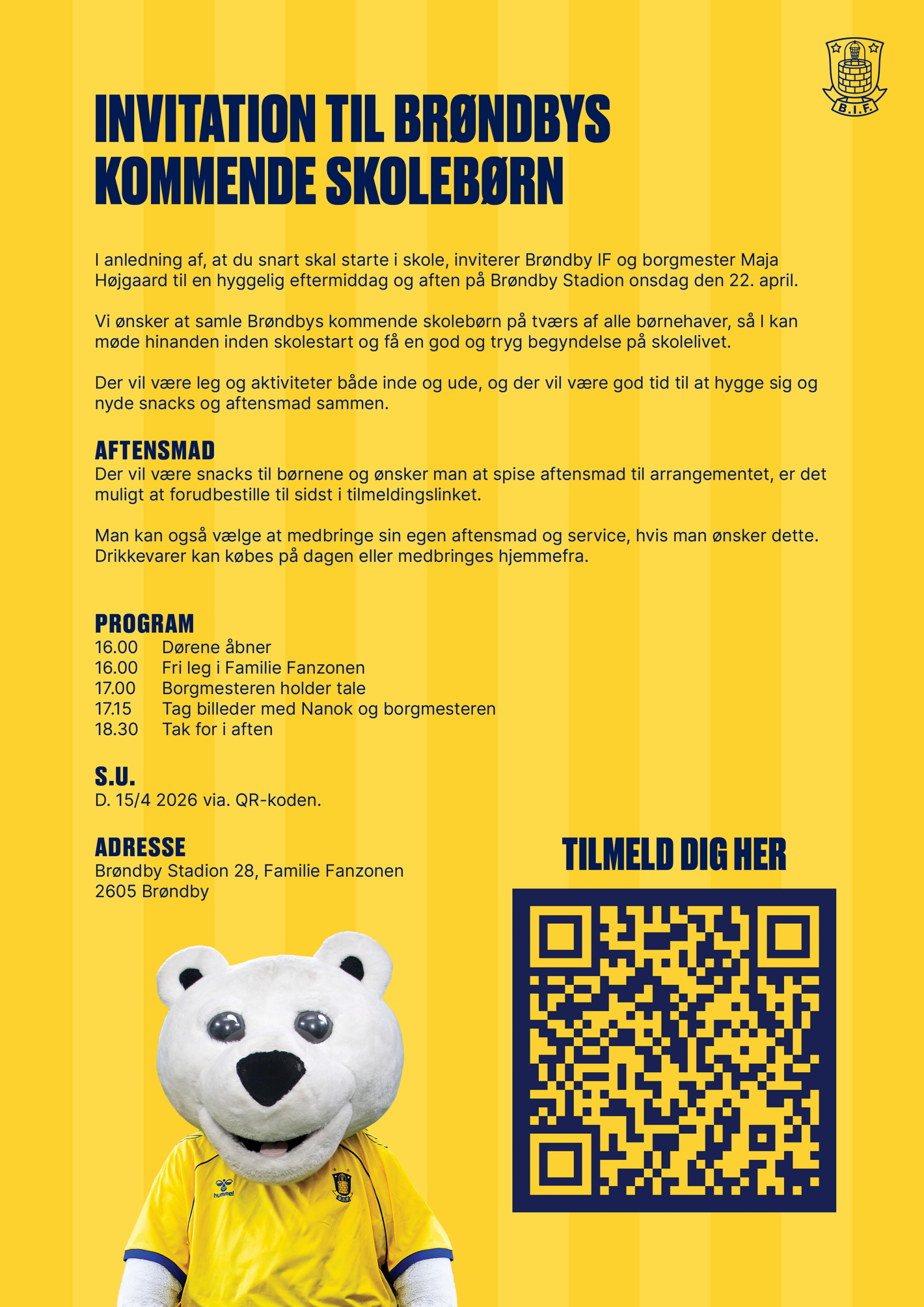 Brøndby IF og borgmester Maja Højgaard inviterer alle kommende skolebørn til en hyggelig eftermiddag på Brøndby Stadion onsdag den 22. april fra kl. 16.00-18.30.